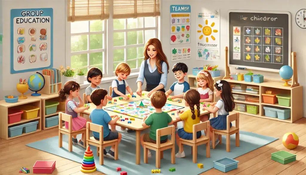 Grup eğitimi, benzer gelişim ihtiyaçlarına sahip çocukların bir araya gelerek sosyal etkileşim, iletişim ve iş birliği gibi becerileri desteklendiği yapılandırılmış bir eğitim sürecidir. Bu eğitimler, çocukların hem bireysel gelişimini hem de grup içinde kendini ifade etme, dinleme ve paylaşma becerilerini artırmayı hedefler.